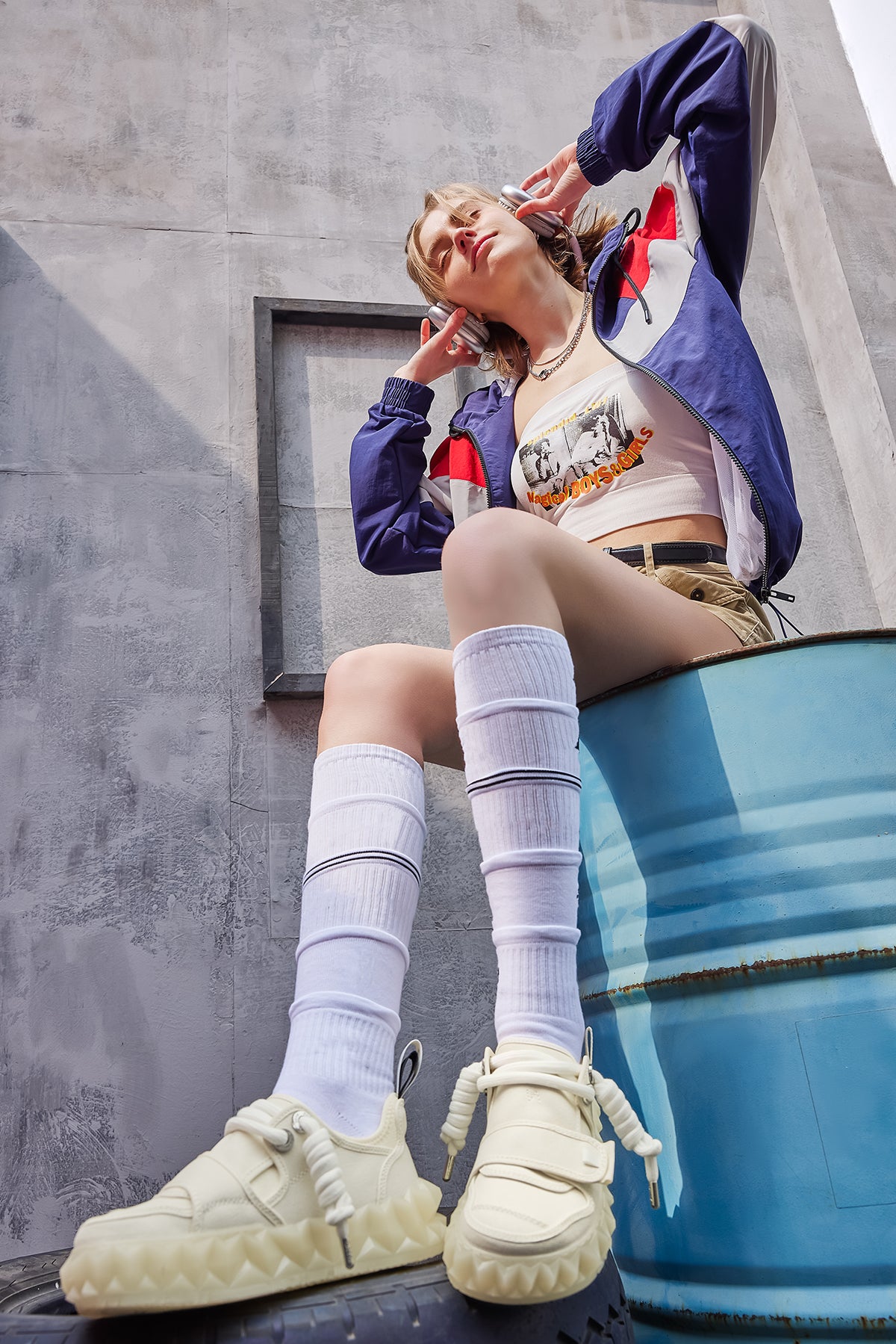 The Ice Melt series combines circular bubbles with sharp-cut facades to showcase the dynamic changes of melting ice. The irregular cuts of the shoe maintain a cohesive design language, while the sole material continues the original transparency. The visual variations under different lighting conditions also stand out as one of the highlights of the series.