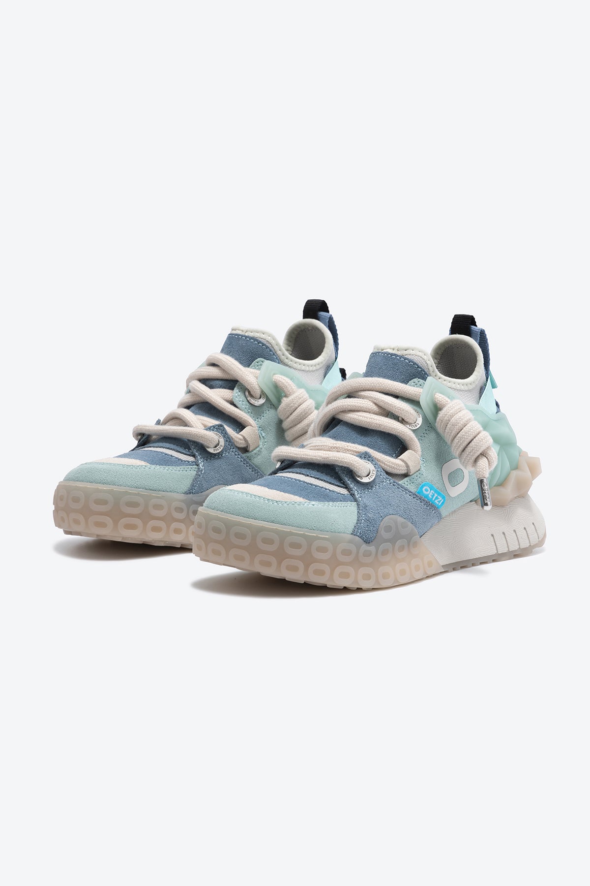 The O-shaped TPU material particles on the sole provide a better grip. The small translucent shape of the heel continues the design elements of the ice bottom, which not only achieves the stability function but also emphasizes the source of inspiration of the OETZI Iceman. The materials still use the classic combination of suede and canvas, and the classic caterpillar laces and inner boot sock designs allow this new series to continue the DNA halo of the OETZI brand.