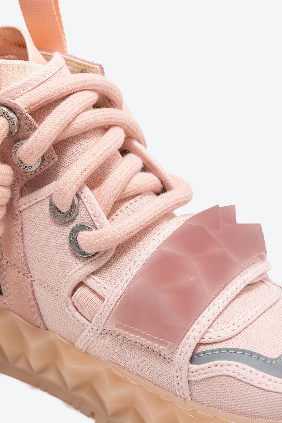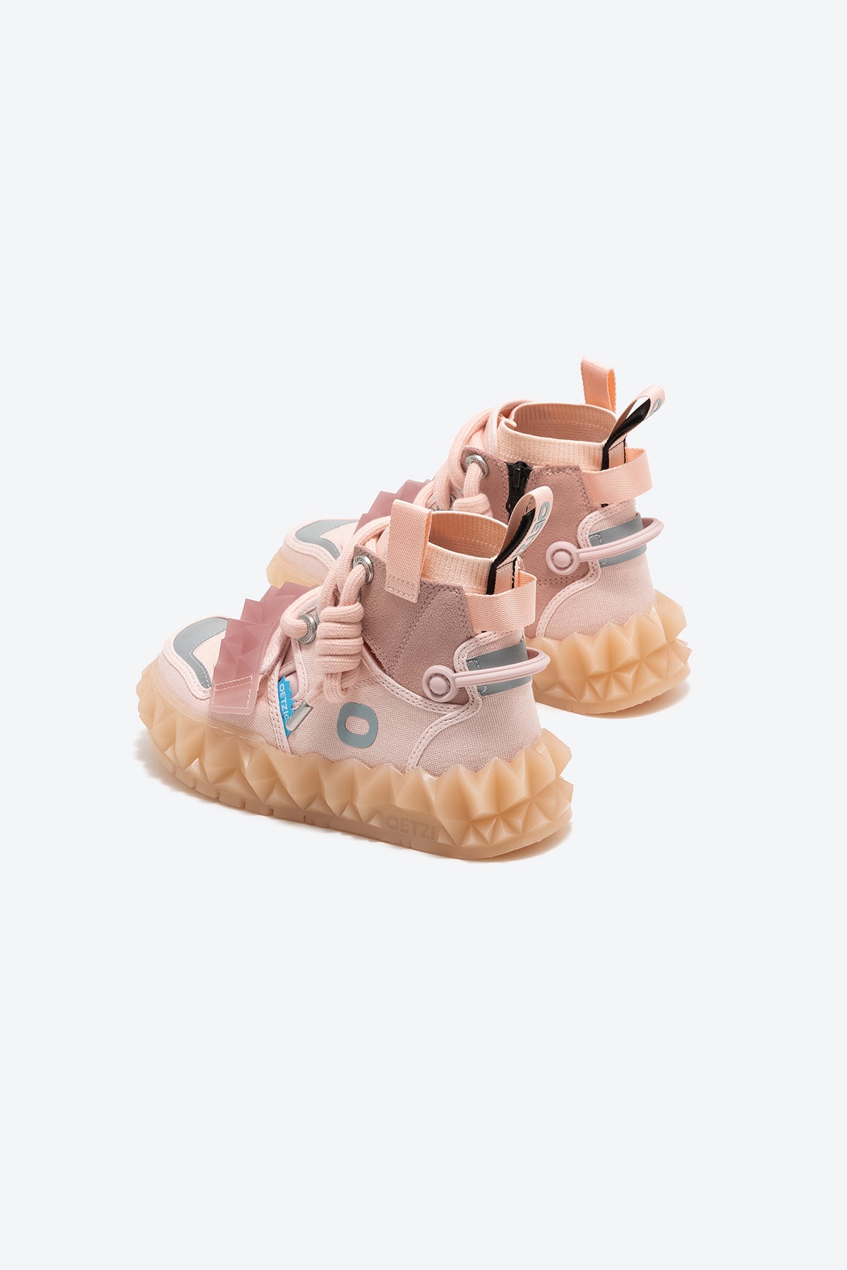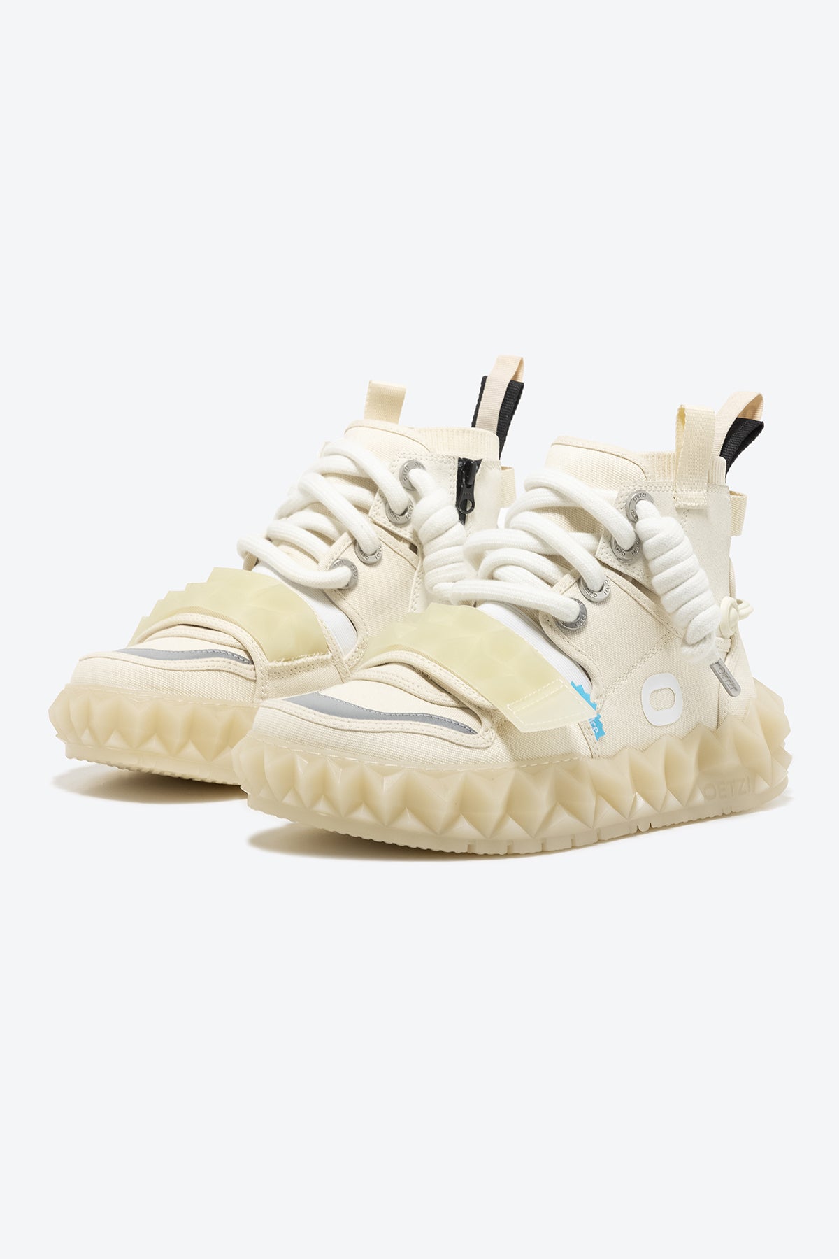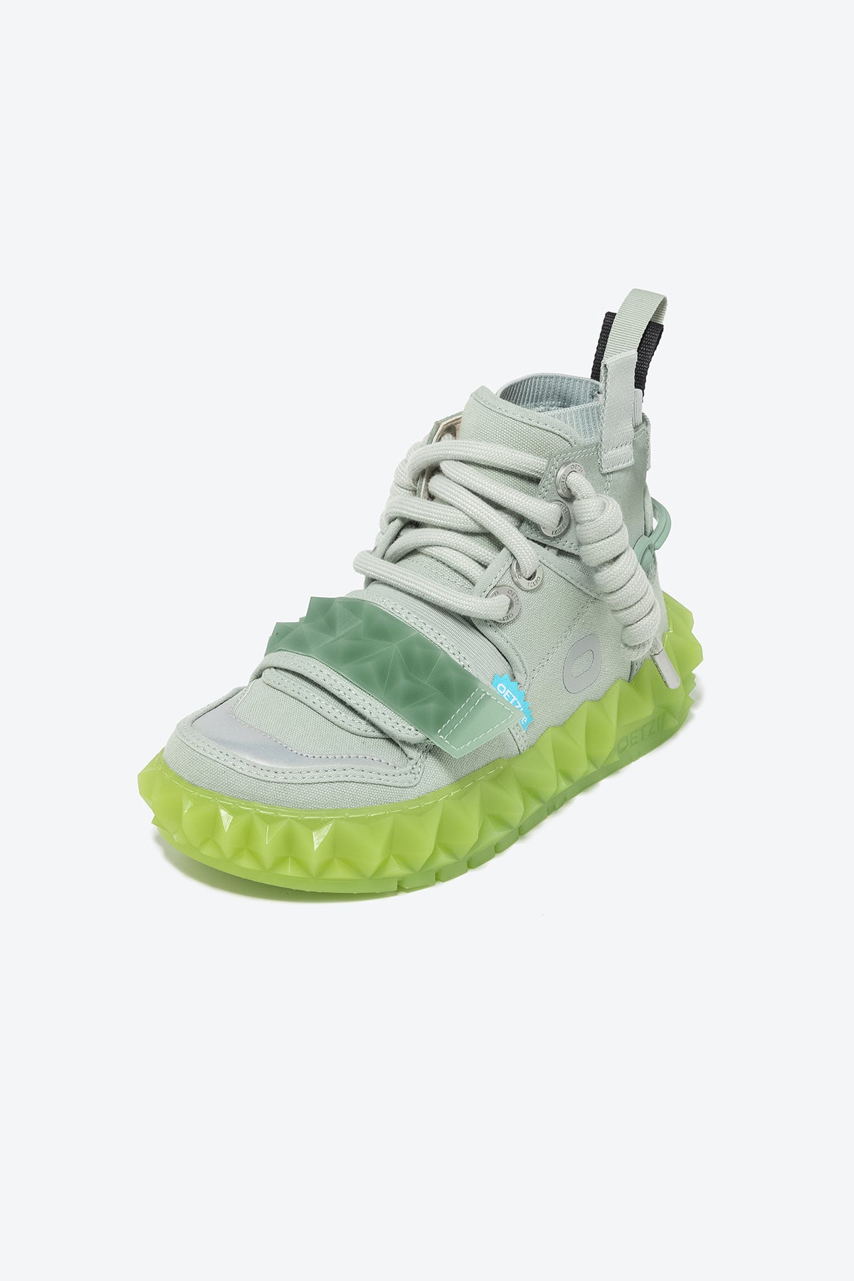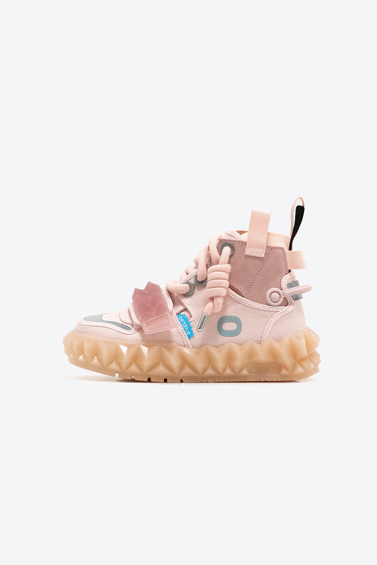 OETZIeroICE series: Redefine the aesthetic concept and realize the freedom of design form! The high-bonded design can wrap the ankle better and make the ankle appear slimmer. That use of angular jelly crystal soles makes the pair of retro ugly hot shoes full of modernity, and they are paired with age-reducing Velcro to increase the visual layering.
